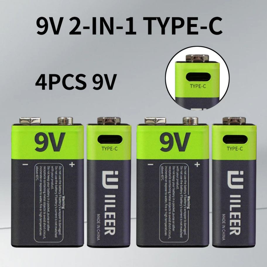 Iileer ชุดแบตเตอรี่ลิเธียมไอออนแบบชาร์จไฟได้แบบพกพาขนาด9โวลต์350มิลลิแอมป์3700mWh 1200รอบคลังสินค้าในสต็อกของสหรัฐอเมริกา