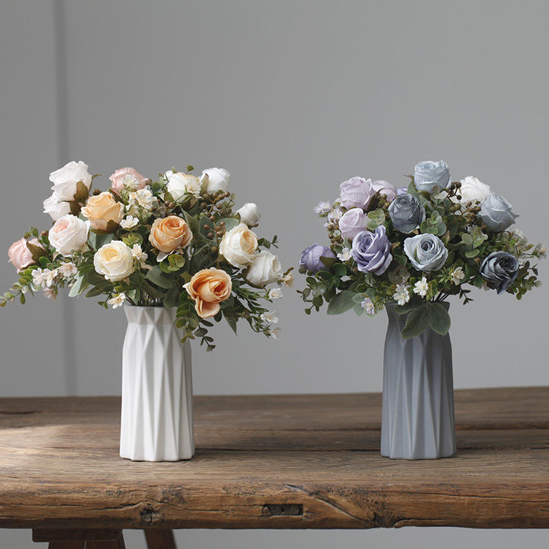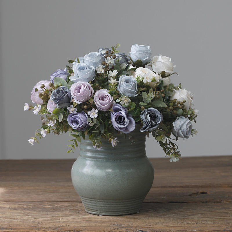 ช่อกุหลาบตูมดอกกุหลาบขนาดเล็ก7สีสำหรับแต่งบ้านช่อดอกไม้ประดิษฐ์ตกแต่งงานแต่งงานสี IJ012ฤดูใบไม้ร่วง