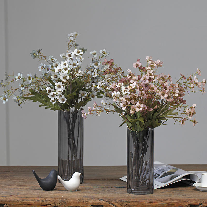 ดอกไม้ประดิษฐ์สำหรับตกแต่งงานแต่งงานในบ้านดอกไม้15หัวดอกพลัมผ้าไหมประดิษฐ์สไตล์วินเทจ IJ018จีน
