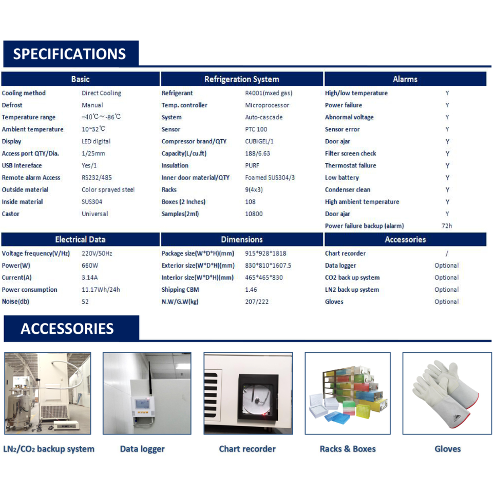 Ikeme ตู้แช่แข็งทางการแพทย์อุณหภูมิต่ำมาก188L -86องศาตู้แช่แข็งแช่แข็งแช่แข็งแบบตั้งตรง