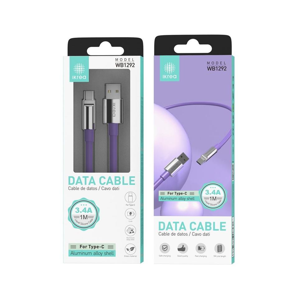 IKREA WB1292 Liquid Silicone Type-C Cable 3.4A 1M in Purple - Tech Accessories