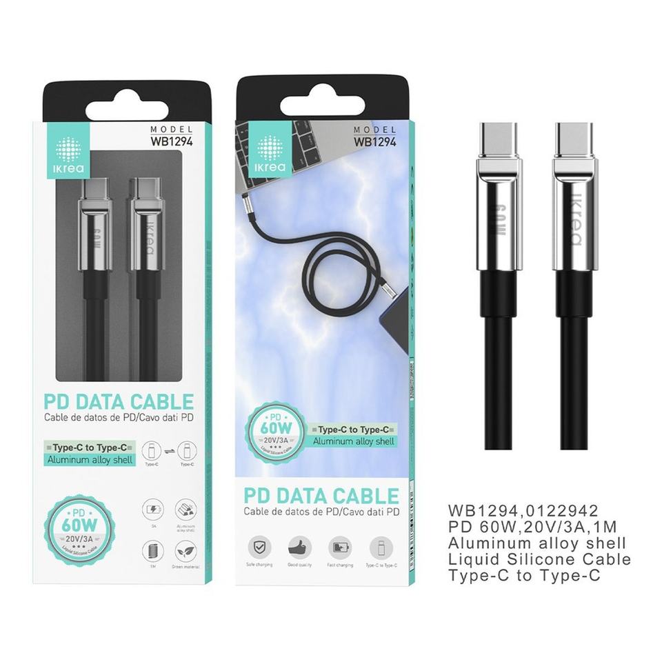 IKREA WB1294 TYPE-C to TYPE-C PD Cable 60W 3A in Black - Tech Accessories