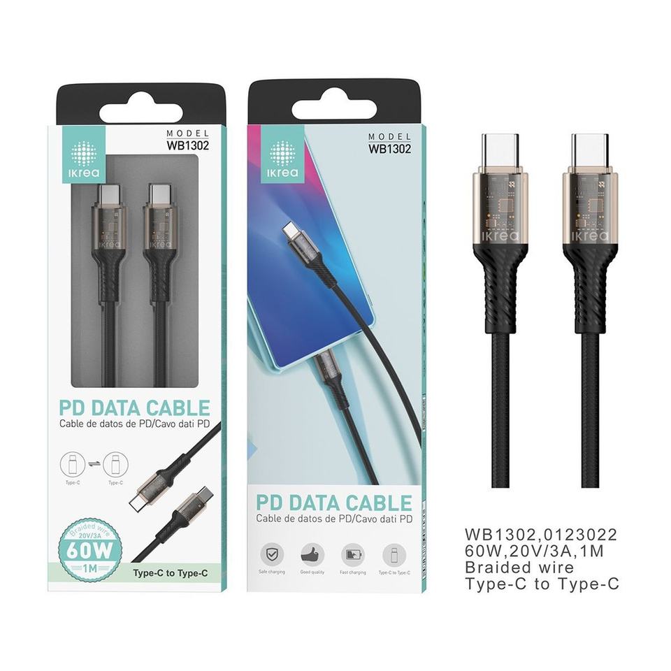 IKREA WB1302 TYPE-C to TYPE-C PD Cable G 60W 3A 1M Black - Tech Accessories