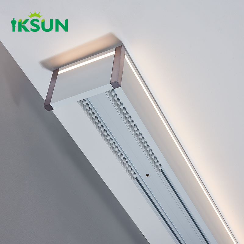 รางม่านติดผนังแบบคู่ IKSUN พร้อมไฟ LED สำหรับตกแต่งหน้าต่าง