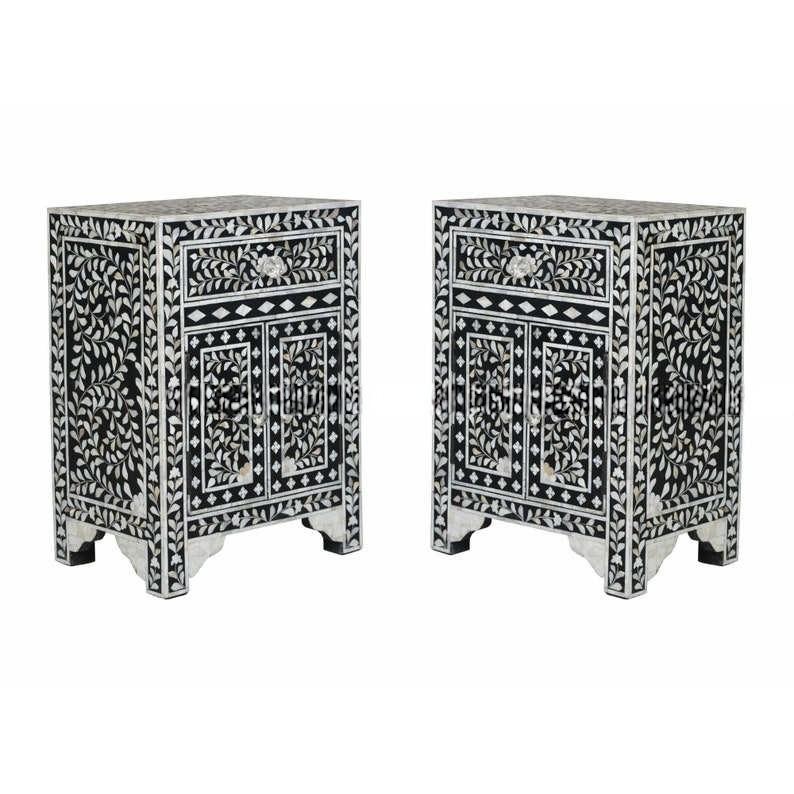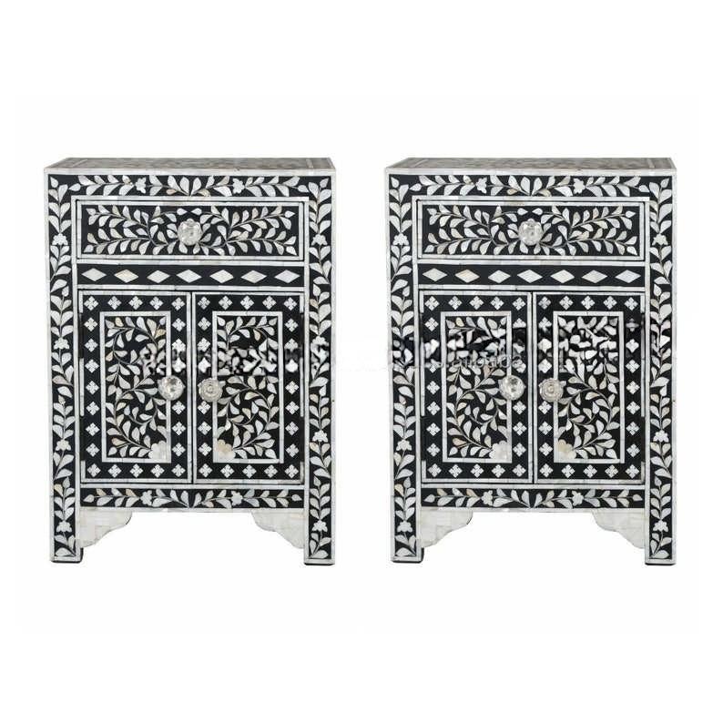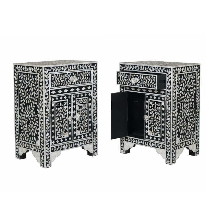 โต๊ะลิ้นชักลายไม้ฝังกระดูกจาก ILAHI ดีไซน์ทันสมัย ตกแต่งด้วยหินอาเกต พร้อมช่องเก็บของสามชั้น เฟอร์นิเจอร์พกพาสำหรับบ้าน