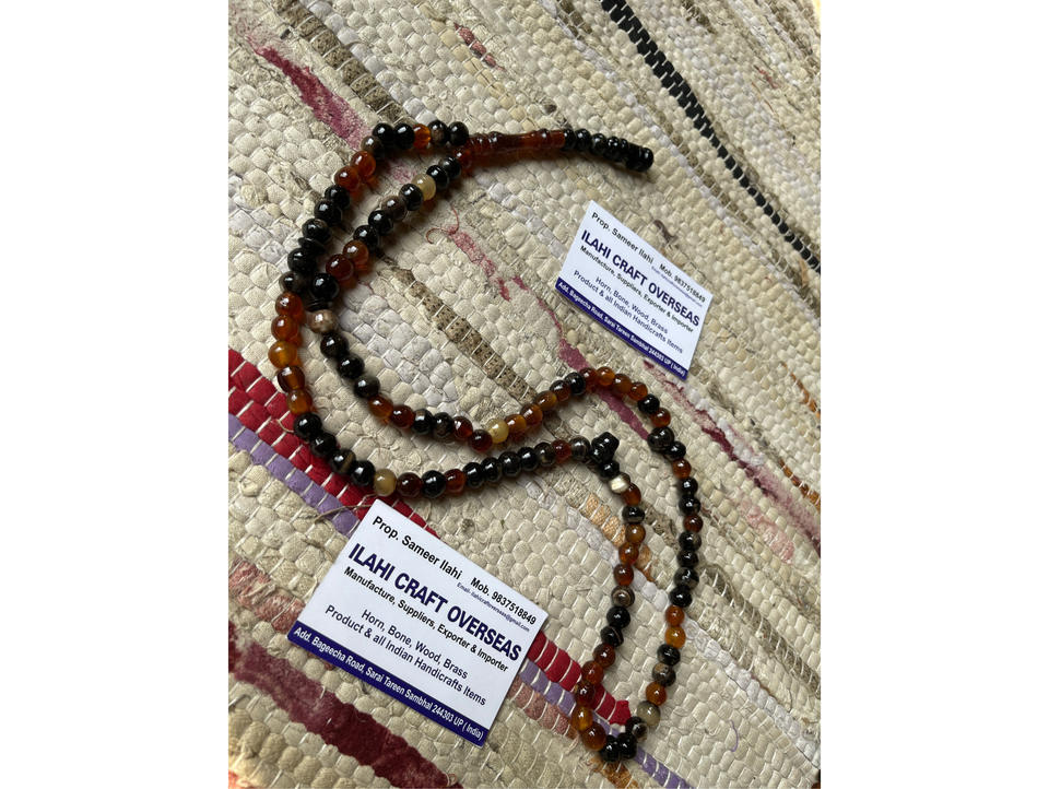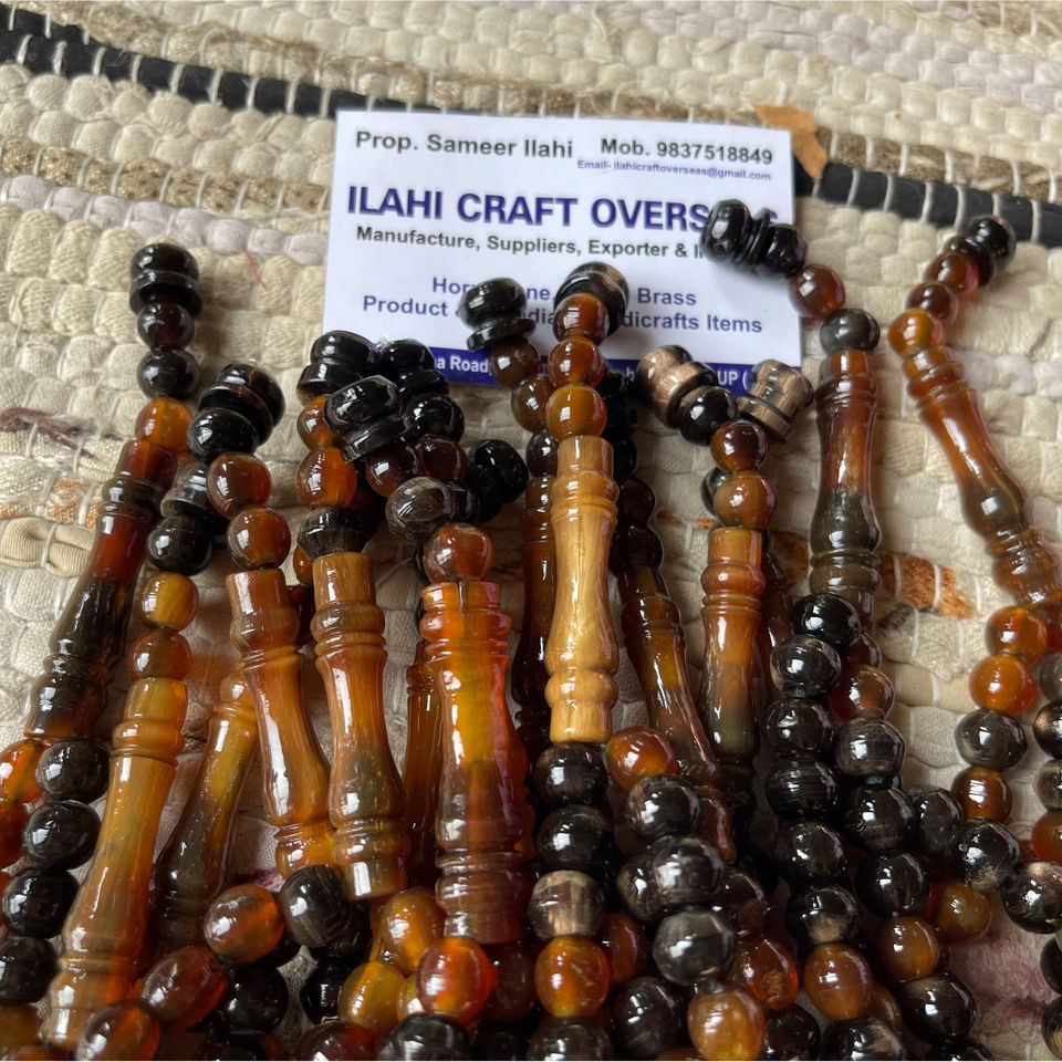 ลูกประคำอิสลามทรงกลมขัดเงาแบบเรียบง่าย ทำจากเขาควาย เป็นมิตรกับสิ่งแวดล้อม จำนวน 99 เม็ด ยี่ห้อ ILAHI จากอุตะร์ปัฎห์ธิปท์