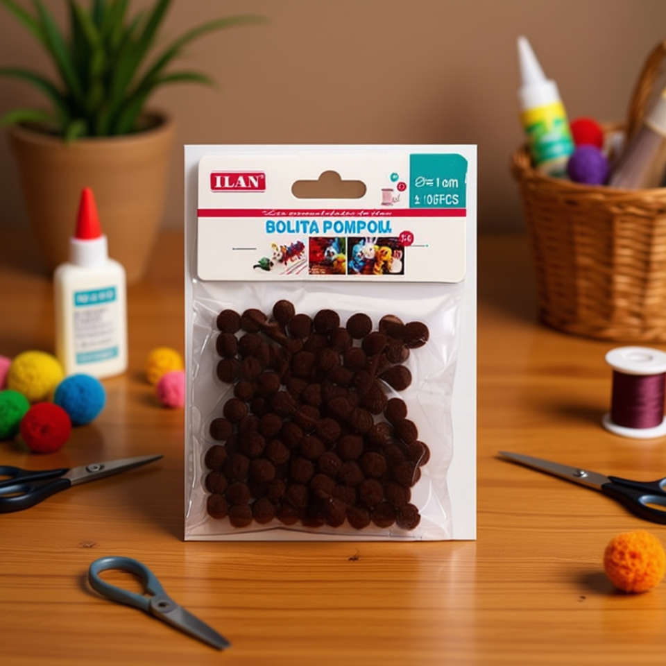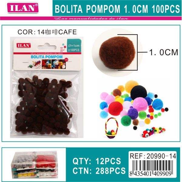 ILAN ลูกปอมปอม 1.0 ซม. สีกาแฟ อุปกรณ์งานฝีมือ 100 ชิ้น