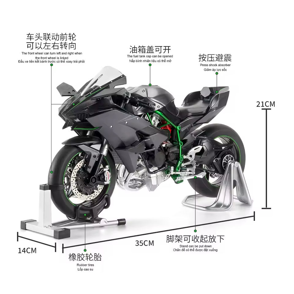 H2R คอลเลกชันรถจักรยานยนต์โมเดลไฟฟ้าขนาดใหญ่ วัสดุอัลลอย ของเล่นมอเตอร์ไดแคสต์