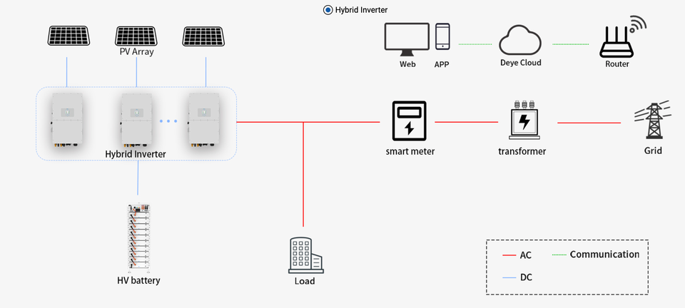 อินเวอร์เตอร์10KW deye 10000W สามเฟสแรงดันสูง HV ไฮบริดอินเวอร์เตอร์พลังงานแสงอาทิตย์ IP65 SUN-5K-SG01HP3-EU-AM2