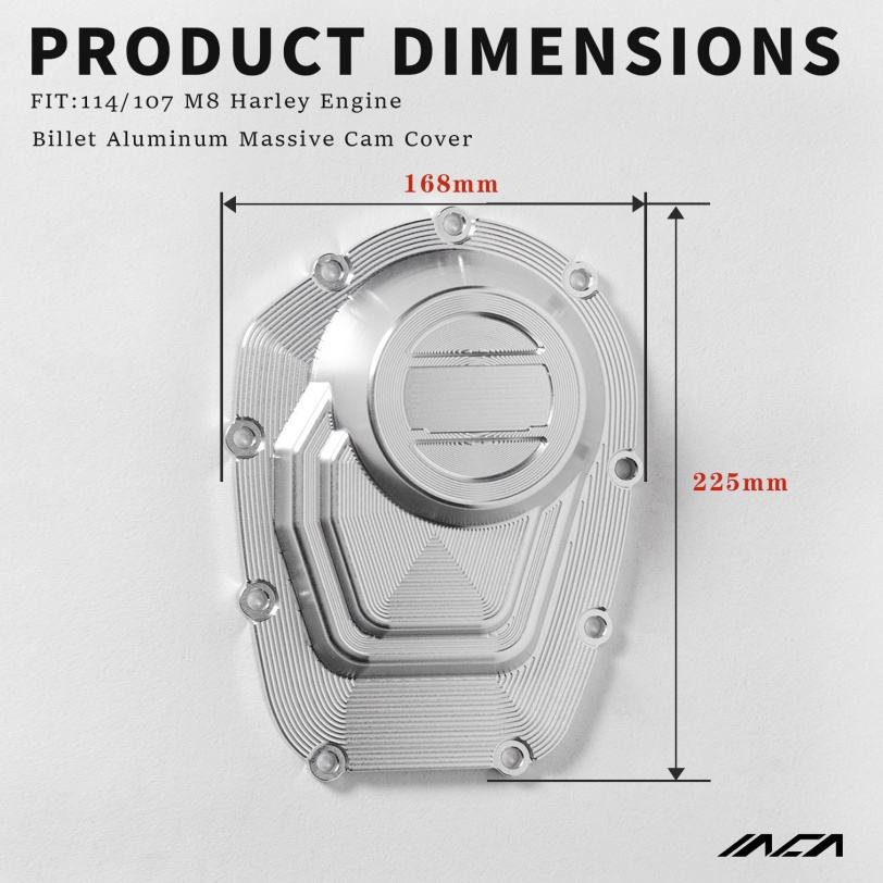 ฝาครอบลูกเบี้ยวขนาดใหญ่แบบกำหนดเองจาก INCA ผลิตด้วยเครื่อง CNC สำหรับเครื่องยนต์ M8 114/107 ทำจากอะลูมิเนียมบิลเล็ต สำหรับอุปกรณ์ตกแต่งรถจักรยานยนต์