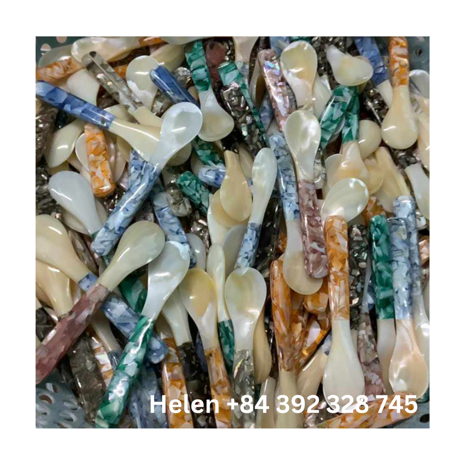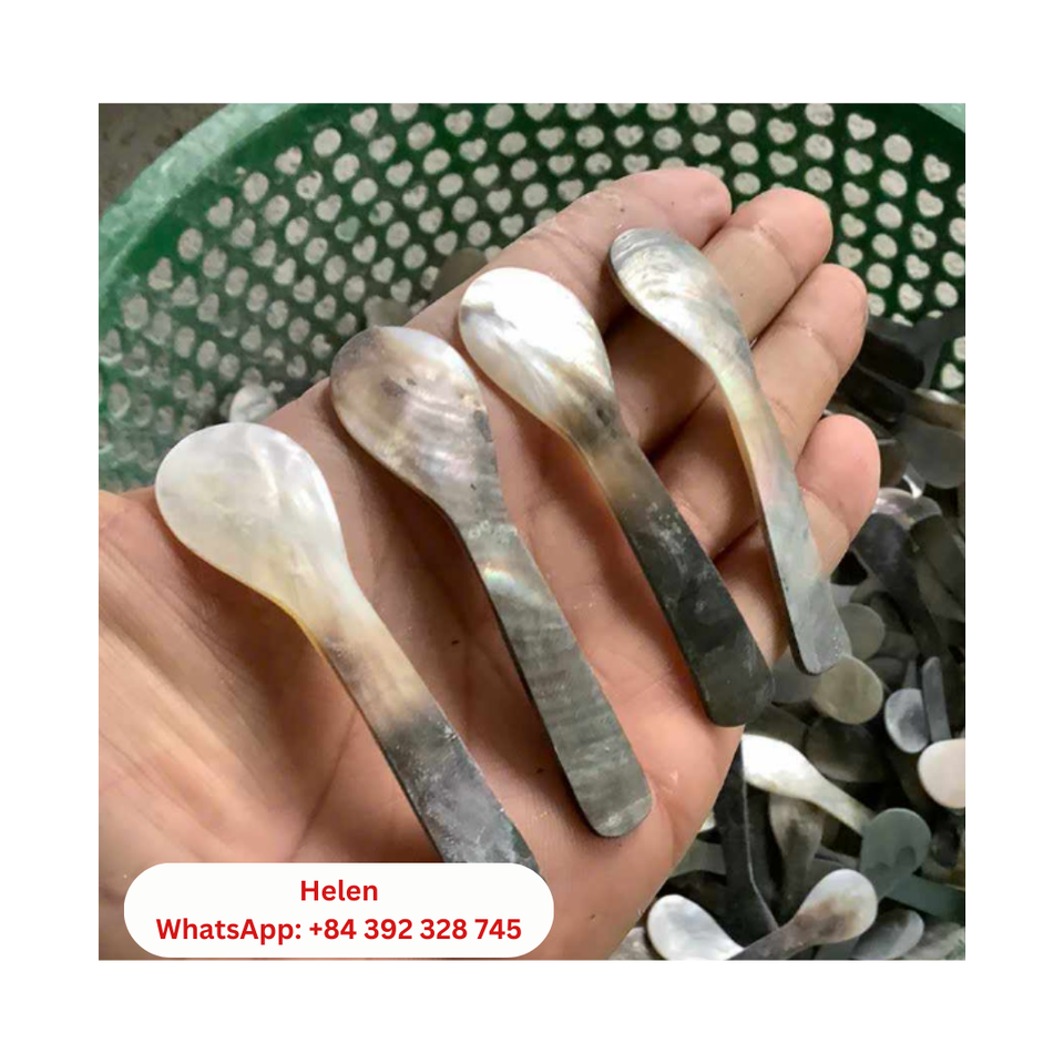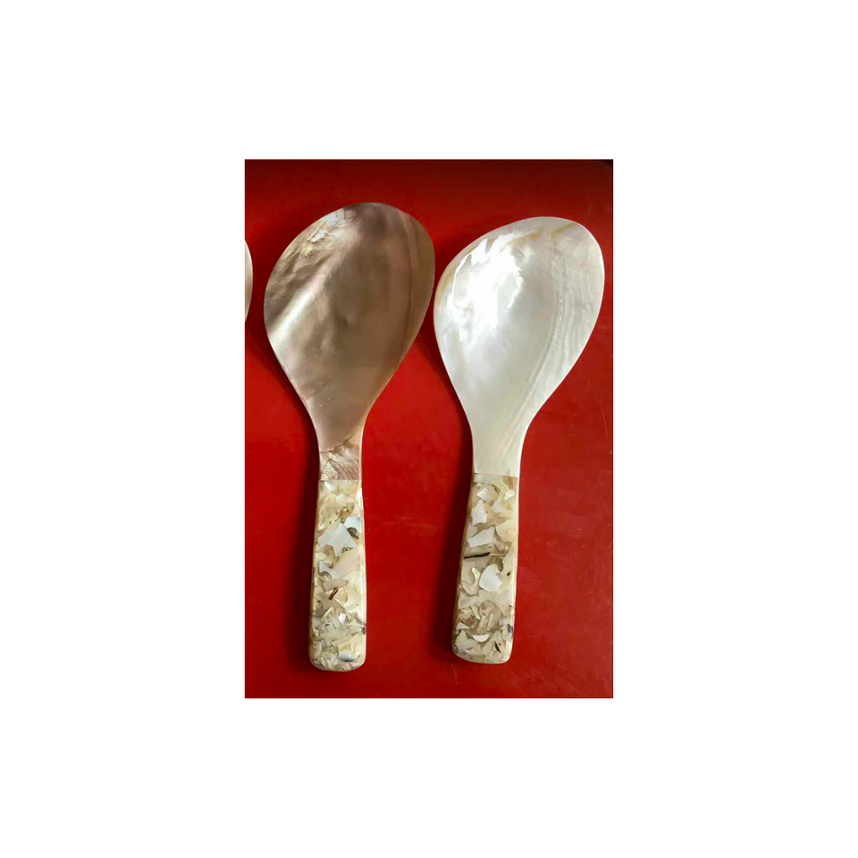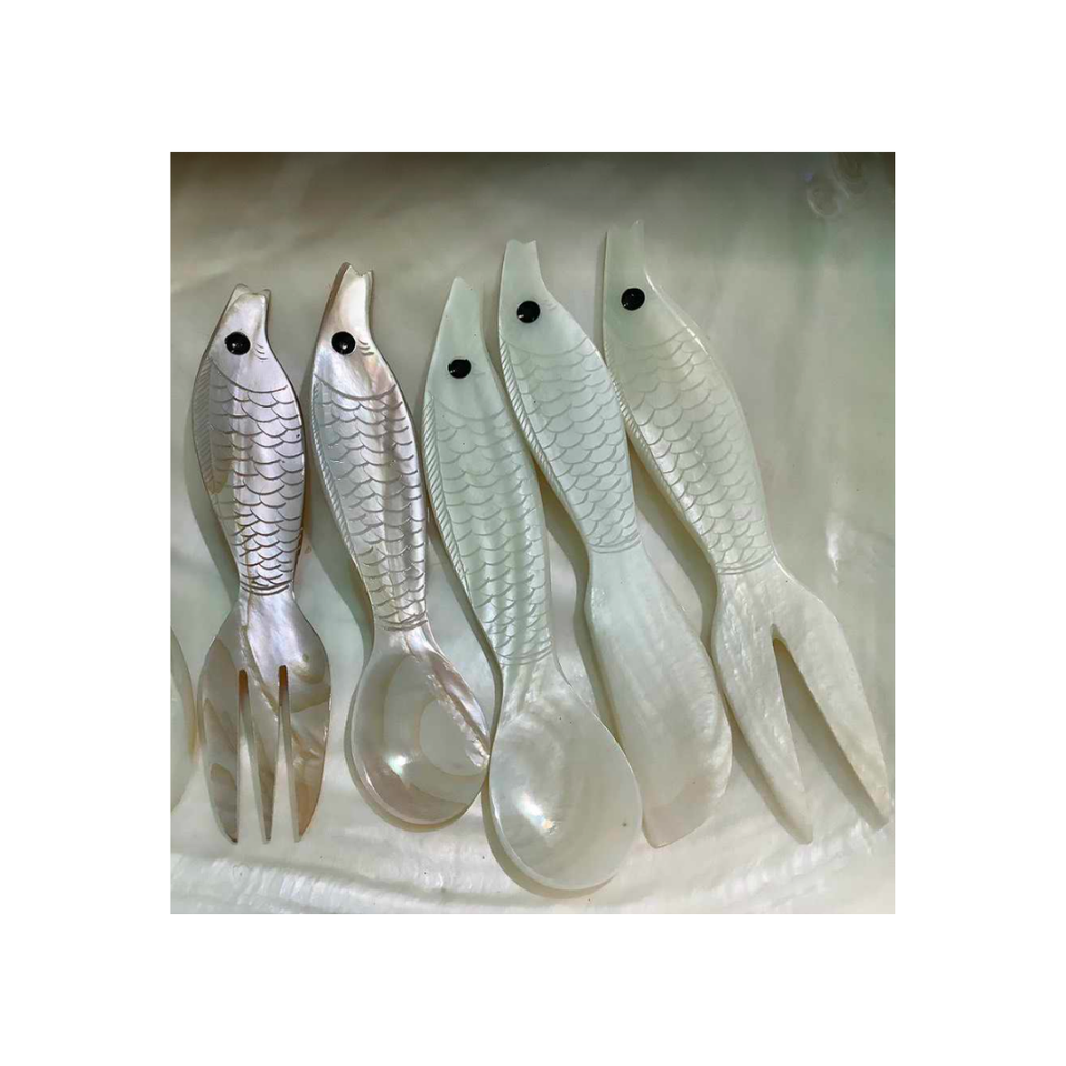 INCREDIBLE MOTHER of PEARL KITCHENWARE SEASHELL SPOON SET - HIGH QUALITY SEASHELL SPOON ENGRAVE WITH ROYAL DESIGN LOW COST