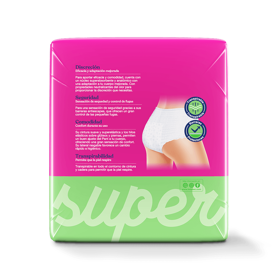 กางเกงซึมซับสำหรับผู้ใหญ่แบบสวมใส่ได้ INDASEC DISCREET PANT SUPER TG B10 ควบคุมการรั่วซึม ป้องกันการซึมเปื้อน สำหรับผู้ชาย