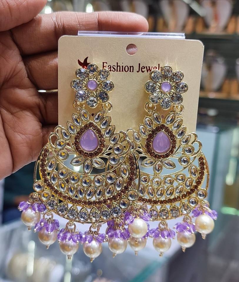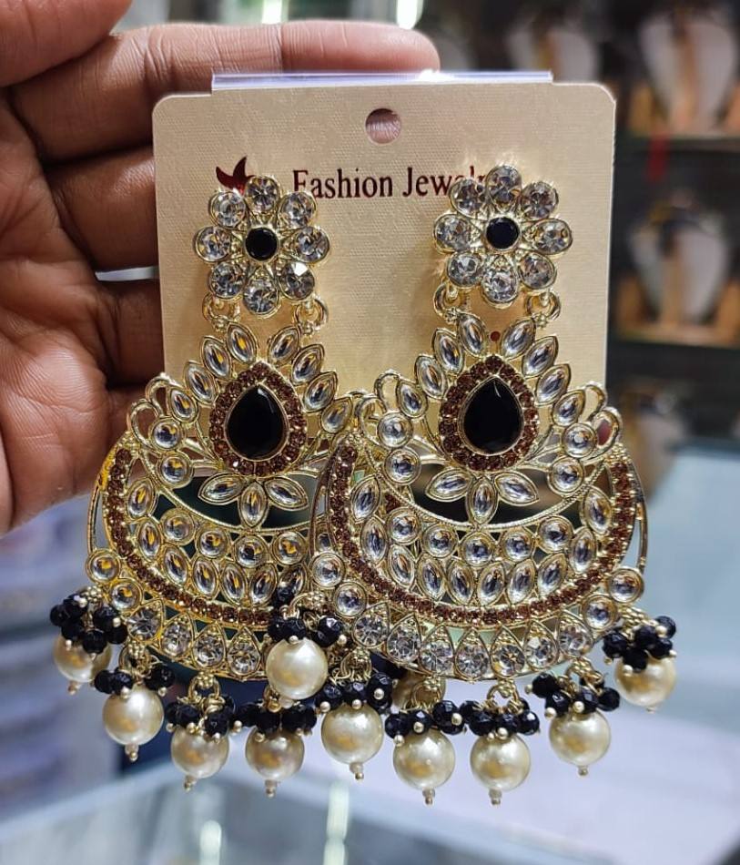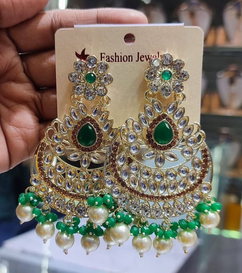 INDIAN LATEST TRADITIONAL KUNDAN HIGH GOLD PLATED WITH PEARL DESIGNER BEAUTIFUL FANCY KUNDAN EARRINGS SET for WOMEN and GIRLS