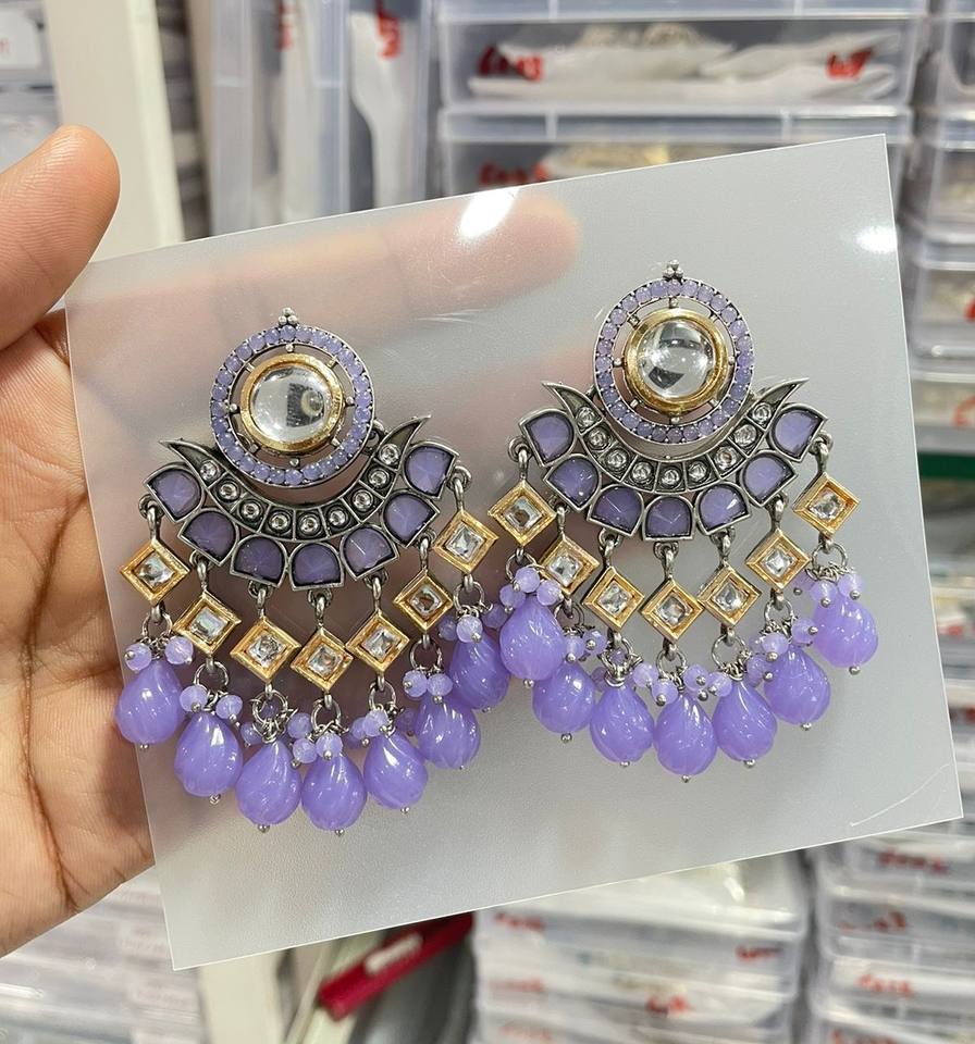 ชุดต่างหู Kundan หุ้มทองแบบดั้งเดิมของชาวอินเดียชุดตุ้มหูแฟนซีสูวยงามดีไซน์ไข่มุกสำหรับผู้หญิงและเด็กผู้หญิง