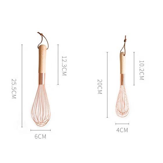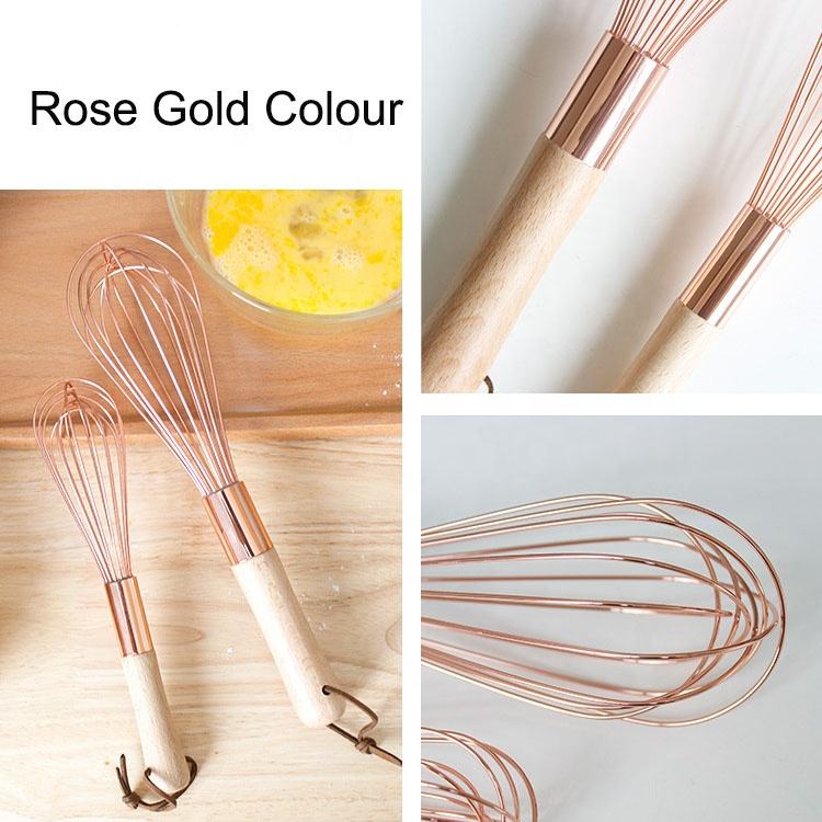 ที่ตีไข่ทำจากโลหะโรสโกลด์พร้อมที่จับไม้ที่ตีไข่สำหรับใช้ในครัว