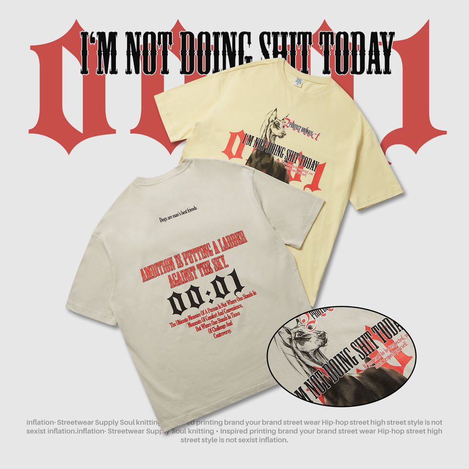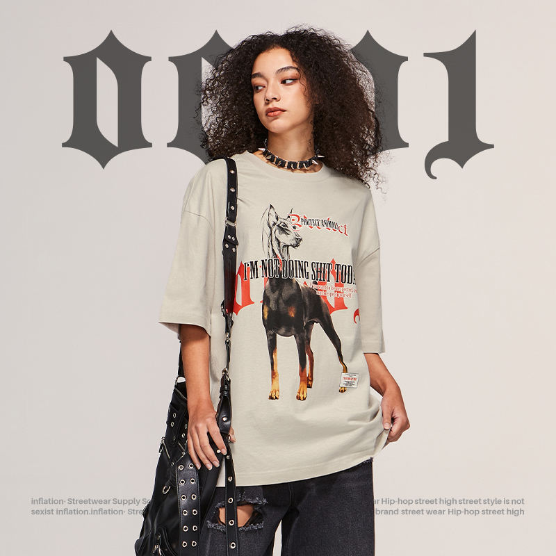 INFLATION Gothic Dog Dobermann High Precision Screen Printing Tshirt Men Rap Fashion Tshirt