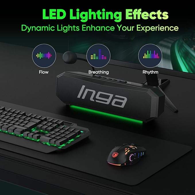 ลำโพงคอมพิวเตอร์ INGA ไมโครโฟนแบบถอดได้ รองรับ Mac แบบ Plug-and-Play ซาวด์บาร์ USB สำหรับโหมดแสงไฟแบบไดนามิก/โหมดเล่นเกม/ฟังเพลง