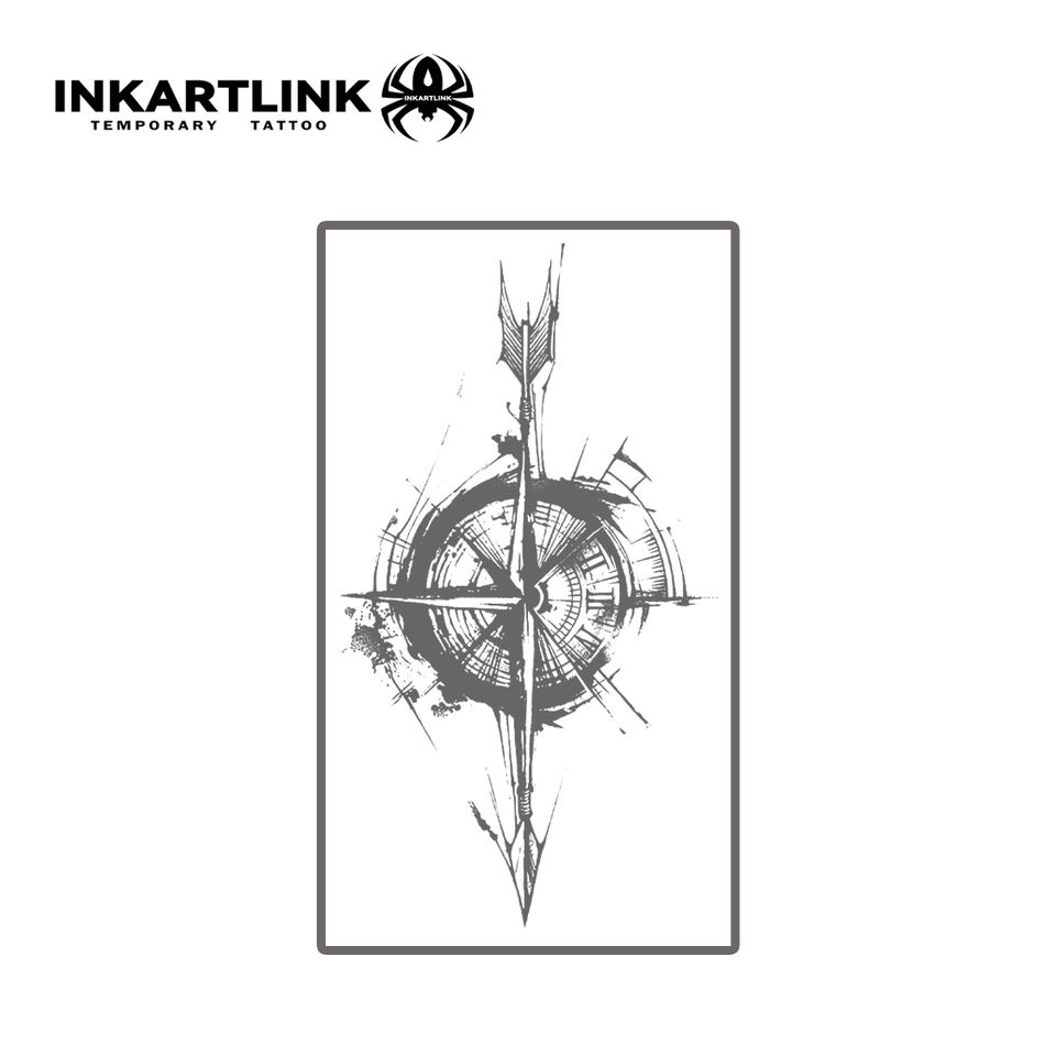 สติกเกอร์ลายสักรูปเข็มทิศ INKARTLINK ลายเส้นนามธรรม นาฬิกา ของตกแต่งสไตล์เฮอร์บัล ติดทนนาน 15 วัน สำหรับศิลปะบนร่างกาย จำหน่ายจำนวนมาก