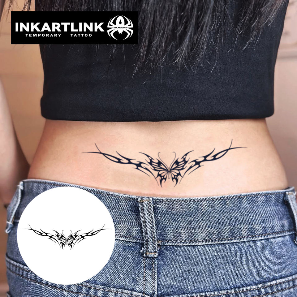 สติกเกอร์ลายสักผีเสื้อชนเผ่า INKARTLINK สไตล์ Y2K ลายโทเท็มบริเวณหลังส่วนล่าง สมุนไพร ติดทนนาน 15 วัน ลายสักกึ่งถาวรสำหรับตกแต่งร่างกาย บริเวณเอว ขายส่ง