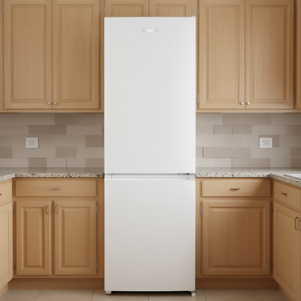 ตู้เย็นและตู้แช่แข็ง INKS 8261 W5E สีขาวแบบคงที่ คลาส D ระบบละลายน้ำแข็งแบบแมนนวล คอมเพรสเซอร์ทำความเย็น ขนาด 54x55x177 ซม.