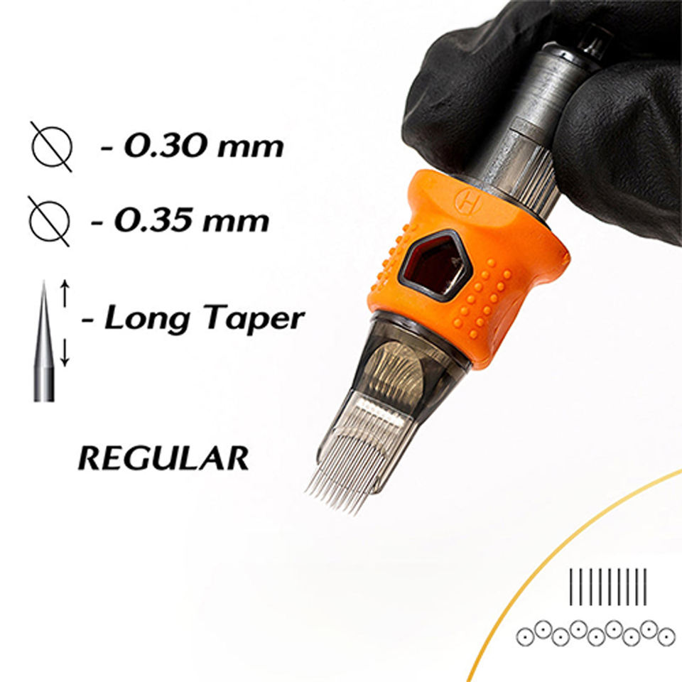 ตลับหมึกสีส้ม16ชิ้น/กล่องแบบใช้แล้วทิ้ง316มีเมมเบรนแม็กนัมสแตนเลสเข็มสักแบบถาวรสำหรับศิลปะบนร่างกาย