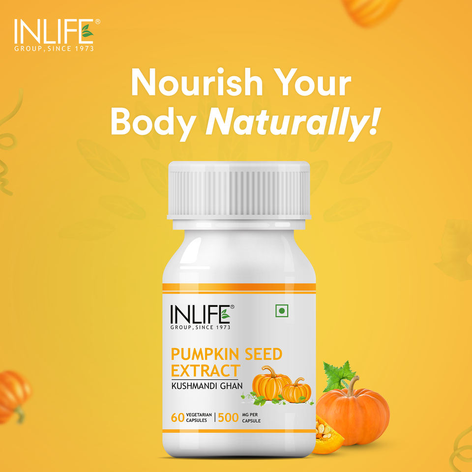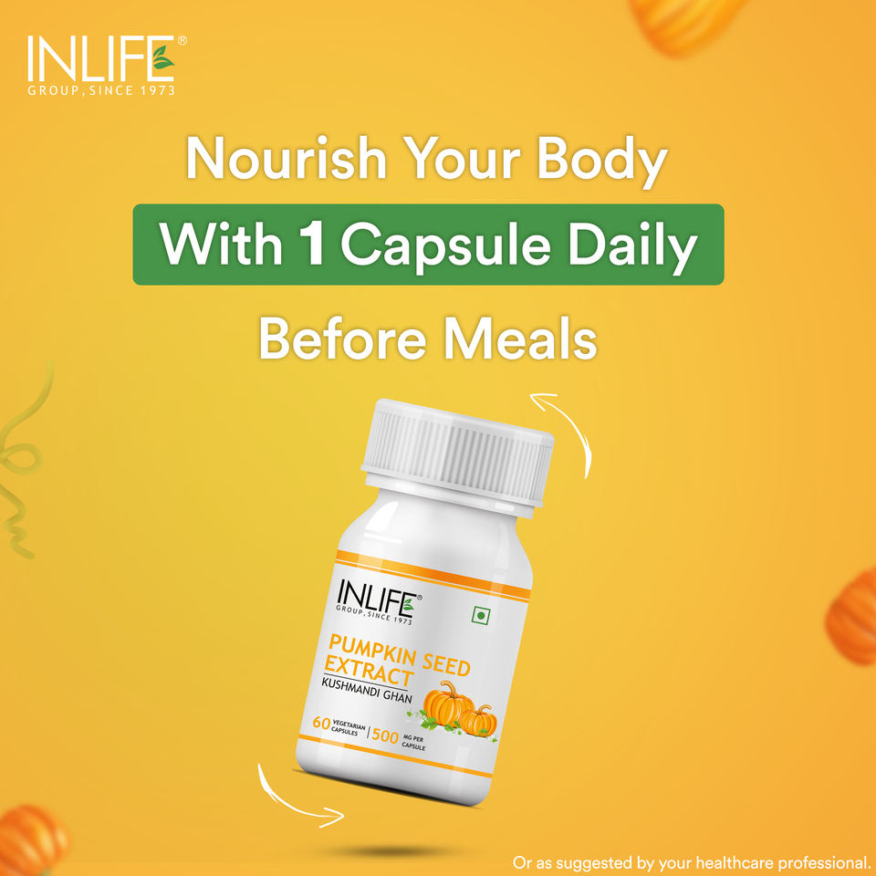 อาหารเสริมสารสกัดจากเมล็ดฟักทอง INLIFE ได้รับการรับรองมาตรฐาน GMP (500 มก.) 60 แคปซูล สำหรับสุขภาพผู้ชาย บำรุงสุขภาพทางเดินปัสสาวะ ปราศจากกลูเตน