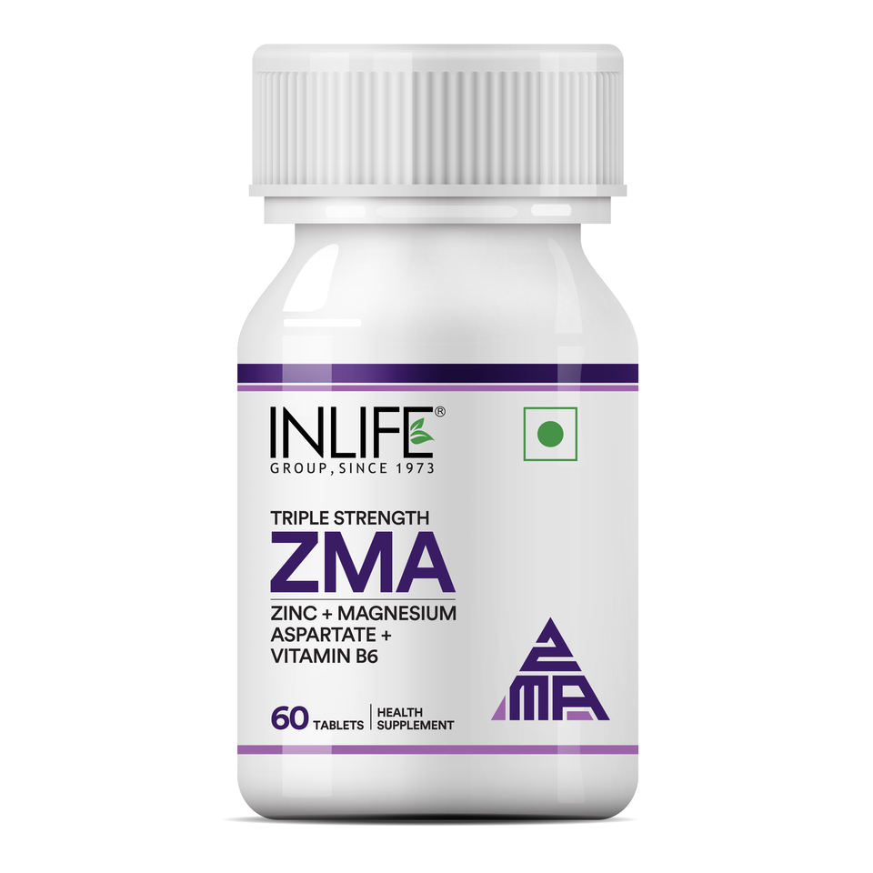 INLIFE ZMA 60 Capsules Zinc Magnesium Aspartate Vitamin B6 for Men Women Supports Muscle Strength Recovery Sleep Immune System