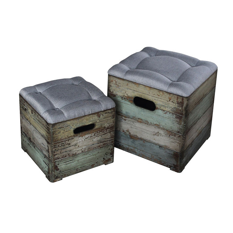 เก้าอี้เก็บของทรงสี่เหลี่ยมแบบเรียงซ้อนได้ สไตล์วินเทจเรียบง่าย ยี่ห้อ INNOVA HOME พร้อมเบาะผ้าหุ้มถอดออกได้ เหมาะสำหรับทางเข้าโรงเรียน