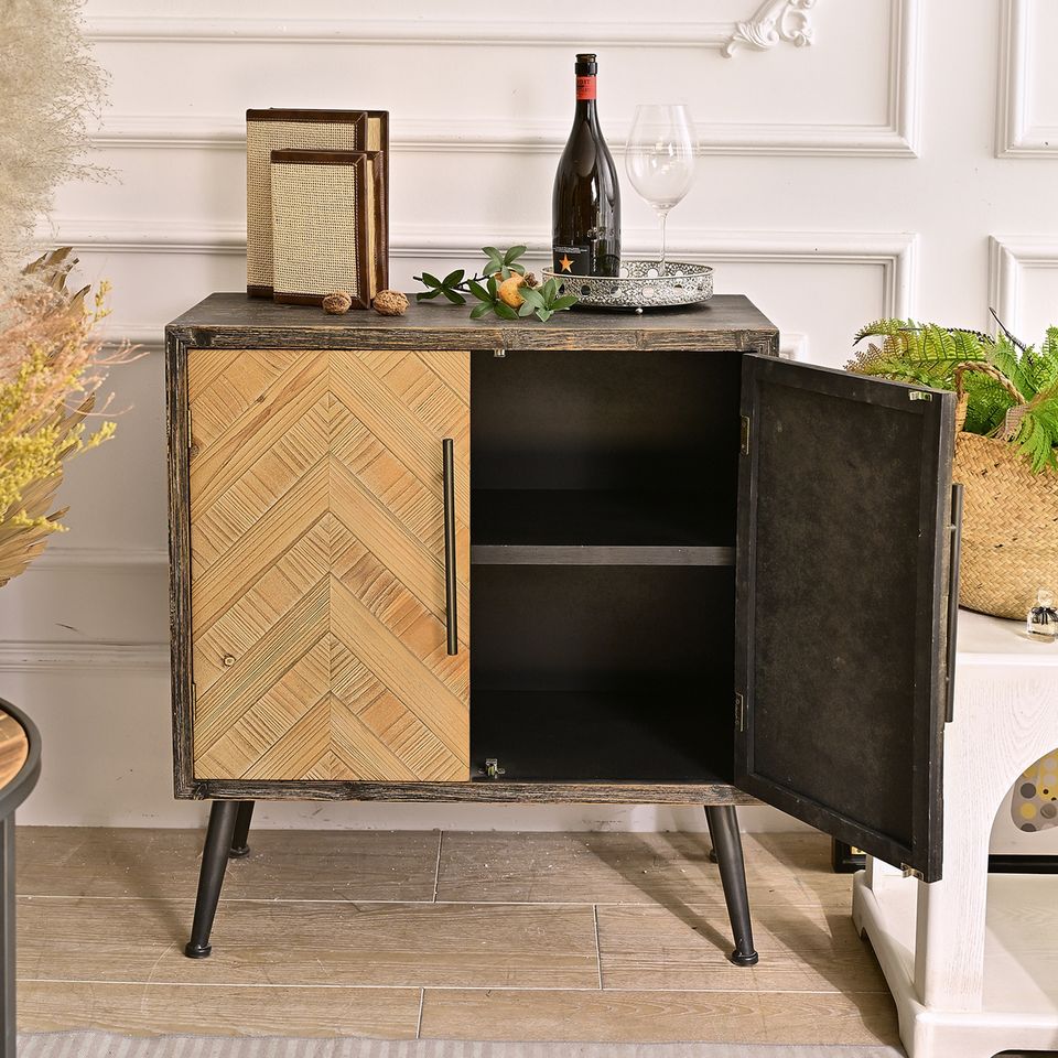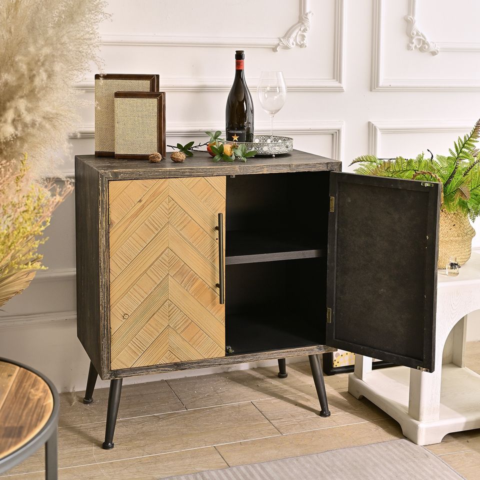 ตู้เก็บของไม้สไตล์วินเทจแบบเรียบง่าย INNOVA ตู้ข้างเตียงในครัวสไตล์ฟาร์มเฮาส์ ขาโลหะ ตกแต่งห้องนั่งเล่น โรงแรม อพาร์ตเมนต์