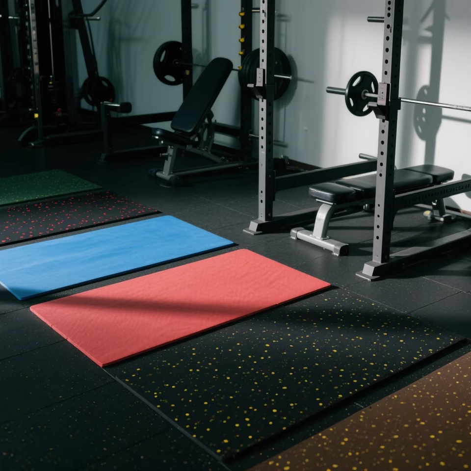 แผ่นยางปูพื้นกันลื่น ปลอดสารพิษ สำหรับสนามเด็กเล่น โรงยิม กีฬา ฟิตเนส ผลิตจากยาง SBR/EPDM แบบประกบติดกัน ปรับความหนาได้ตามต้องการ