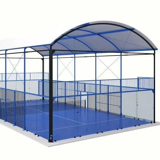 Inolp padel ไม้เทนนิสแบบพาโนรามากลางแจ้งแบบจุ่มร้อนชุบสังกะสีพร้อมหลังคาปูพื้นสำหรับเล่นกีฬาผู้จำหน่ายระดับมืออาชีพ