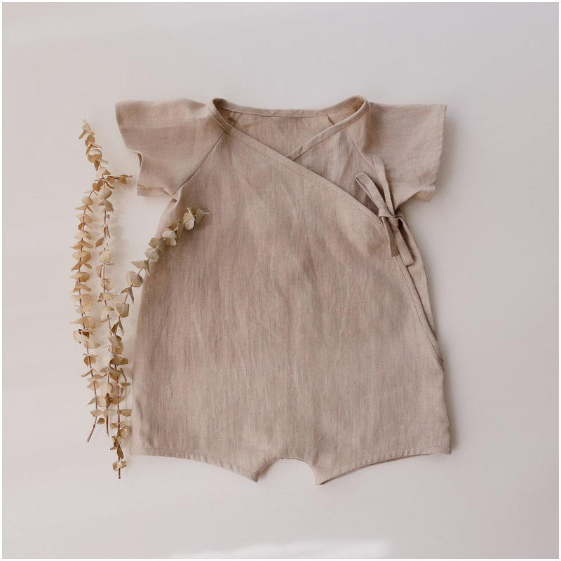ชุดจั๊มสูทเด็กทารกผ้าลินินคอตตอนแบบกิโมโนสำหรับเด็กชายและเด็กหญิง