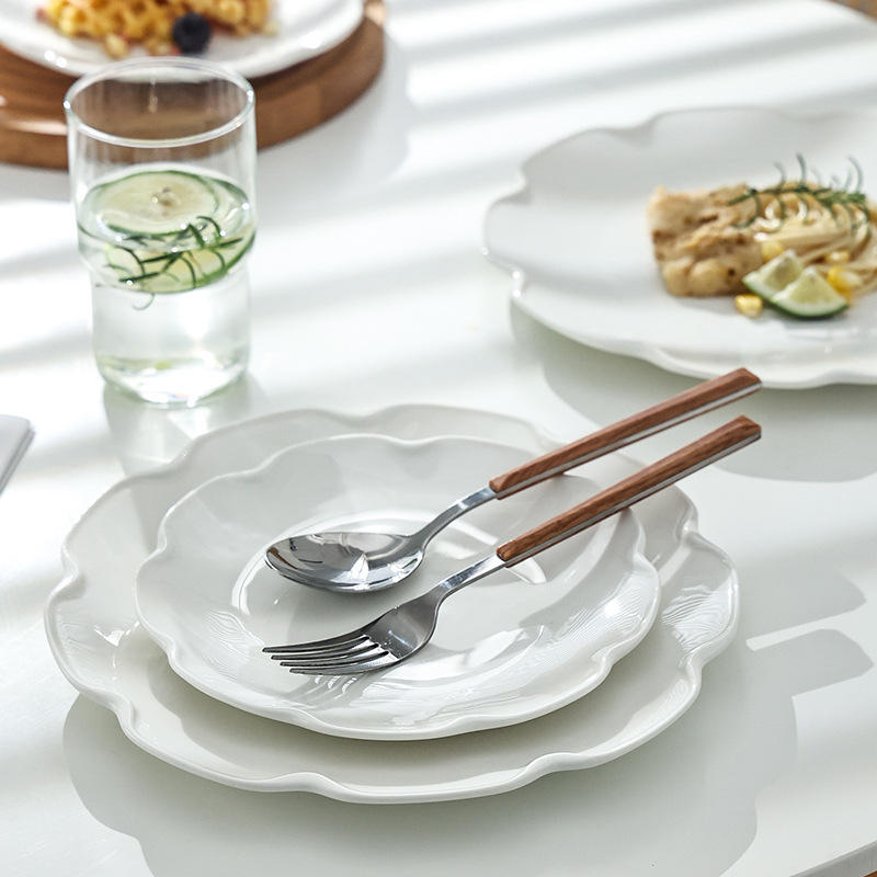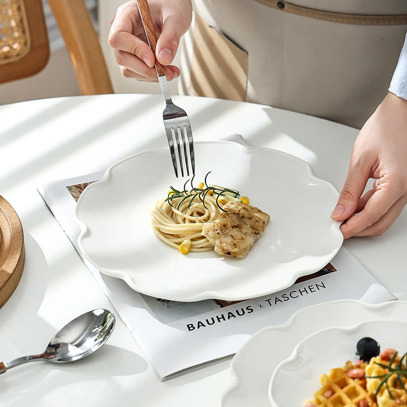 Julieta จานแบนสีขาว21ซม. อุปกรณ์ทานอาหารสำหรับร้านอาหารแบบปรับแต่งได้สำหรับโรงแรม MOQ ต่ำสำหรับใช้ในเชิงพาณิชย์