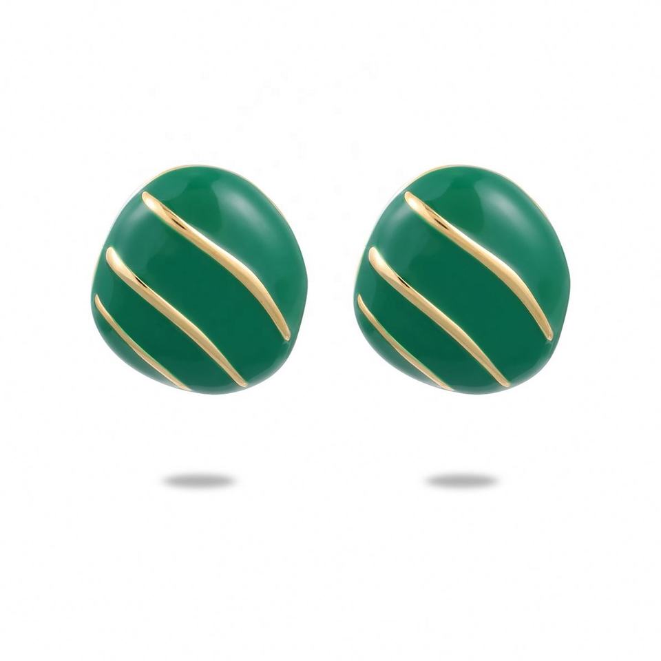 ต่างหูสแตนเลสชุบทองคำแท้ 18K แบบสุญญากาศ ประดับด้วยหินธรรมชาติสีเขียวทรงหยดน้ำ สไตล์ยุโรปอเมริกัน สำหรับผู้หญิง