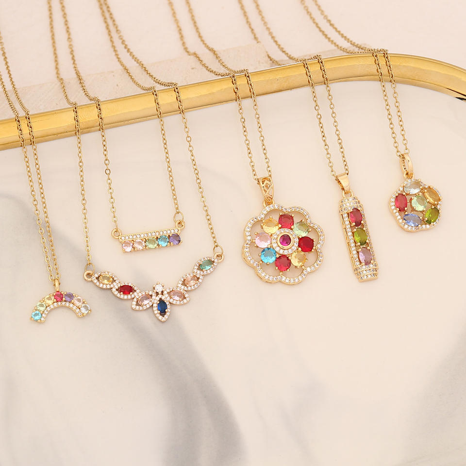 Jewelry name:Colorful Zircon Flower Pendant Necklace