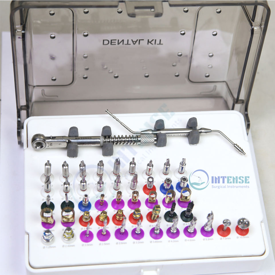 ชุดเครื่องมือผ่าตัดฝังรากฟันเทียมไฟฟ้าแบบเต็มรูปแบบ INTENSE 50 ชิ้น ชุดดอกสว่านไทเทเนียม ระบบ Trephine ด้ามจับแบบมีตัวล็อค ขายส่ง