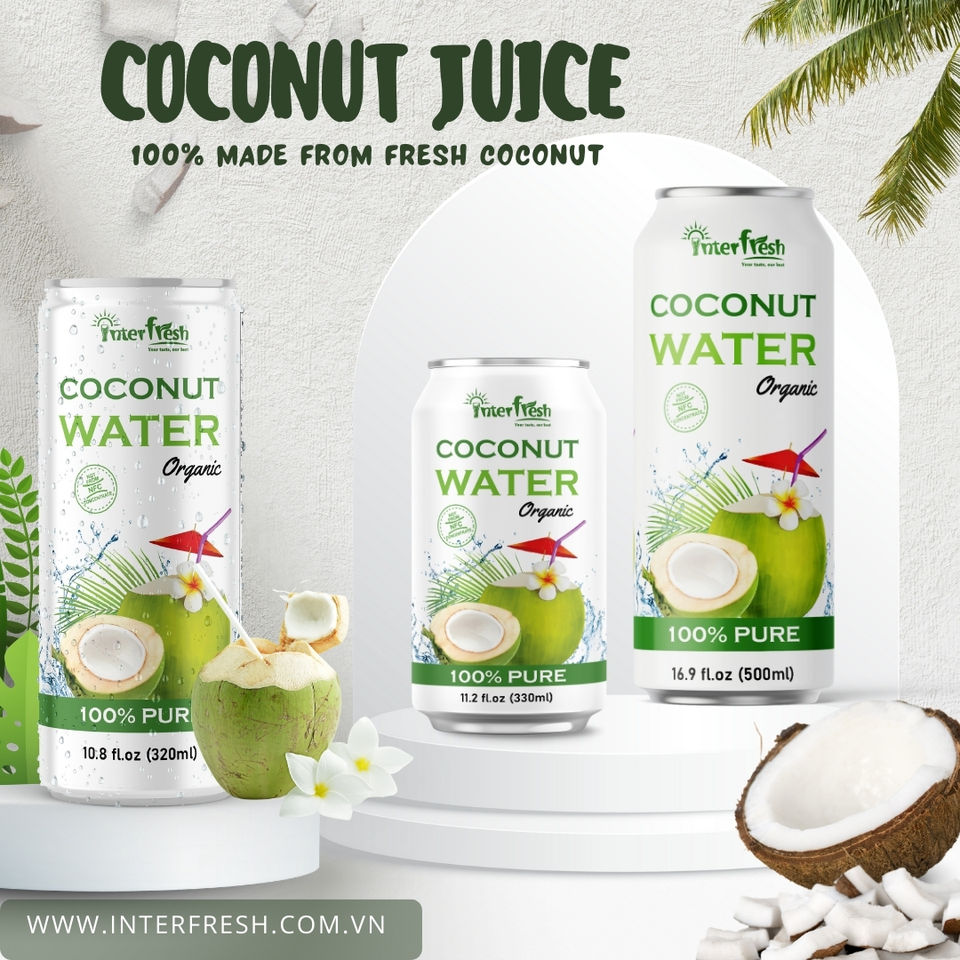 เครื่องดื่มมะพร้าว500มล. แบบ Interfresh แบบขวดทำจากกะลามะพร้าวแบบออร์แกนิกพร้อมส่งจากเวียดนามฟรี