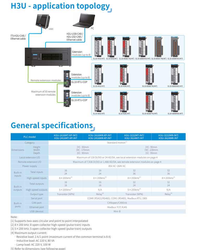 Invoance H3U-1616MR-XP ควบคุมโปรแกรมได้ PLC H32416MT-XP H3 H33624MR H3S 3232MT-H24ADR