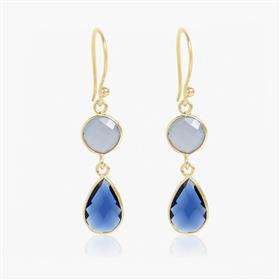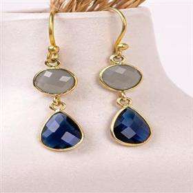 ต่างหูห้อยประดับด้วยอิโอไลต์ควอตซ์และบลูคาลซีโดนีบนตัวเรือนเงินแท้ ต่างหูอิโอไลต์ควอตซ์ ต่างหูห้อยประดับด้วยบลูคาลซีโดนี