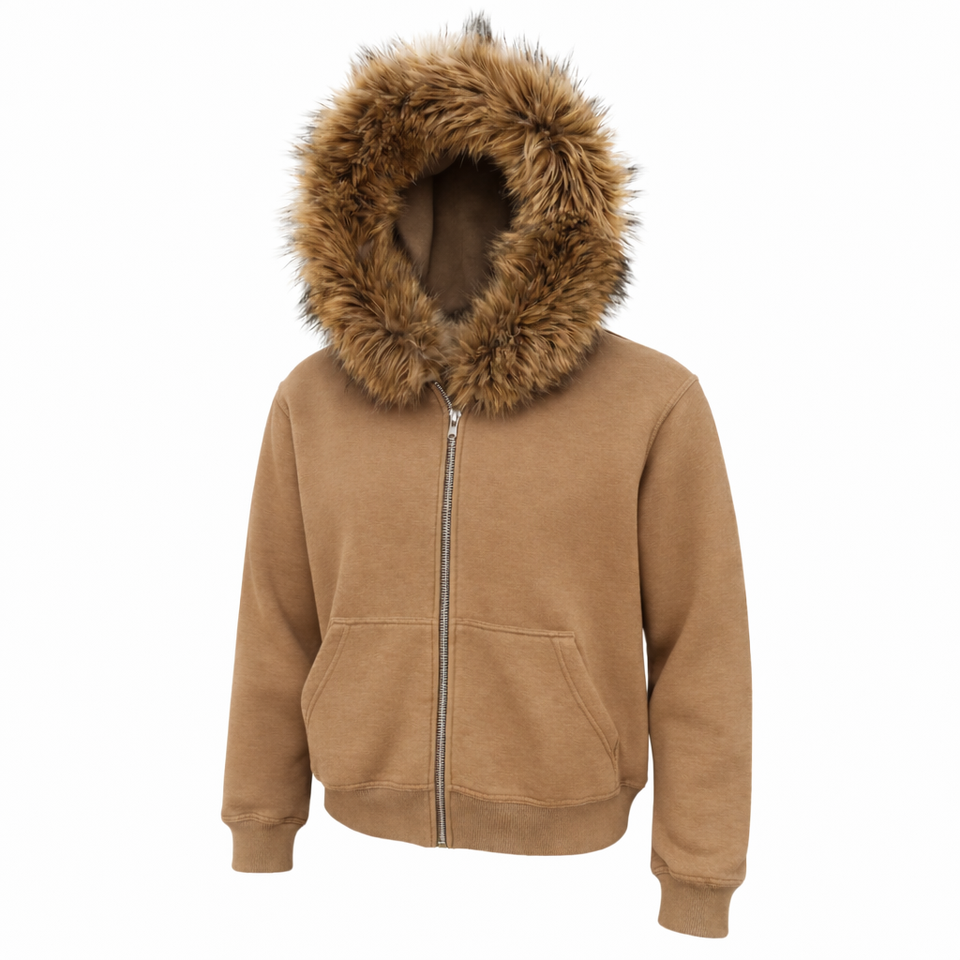 เสื้อฮู้ดขนเฟอร์เทียมสีชมพูอ่อนแบบซิป IOTA SPORTS รุ่น Winter Custom ผลิตจากผ้าฝ้าย 100% เป็นมิตรต่อสิ่งแวดล้อม ทรงหลวม ไหล่ตก ขายส่ง MOQ ต่ำ