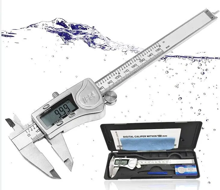 เครื่องมือวัดโลหะดิจิทัลคาลิเปอร์สแตนเลส0-150มม. IP54เวอร์เนียร์คาลิเปอร์อิเล็กทรอนิกส์