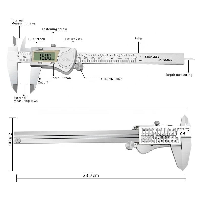 เวอร์เนียคาลิเปอร์ดิจิตอลหน้าจอ LCD ขนาด6นิ้วกันน้ำ IP54สแตนเลสเครื่องมือวัดขนาดดิจิตอลอิเล็กทรอนิกส์