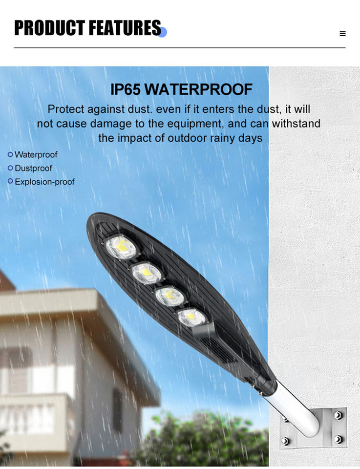 โคมไฟถนนกลางแจ้ง6000K กันน้ำ IP65ประหยัดพลังงาน LED 50W-250W AC แหล่งจ่ายไฟมุมลำแสง180สำหรับสวนไฟถนน