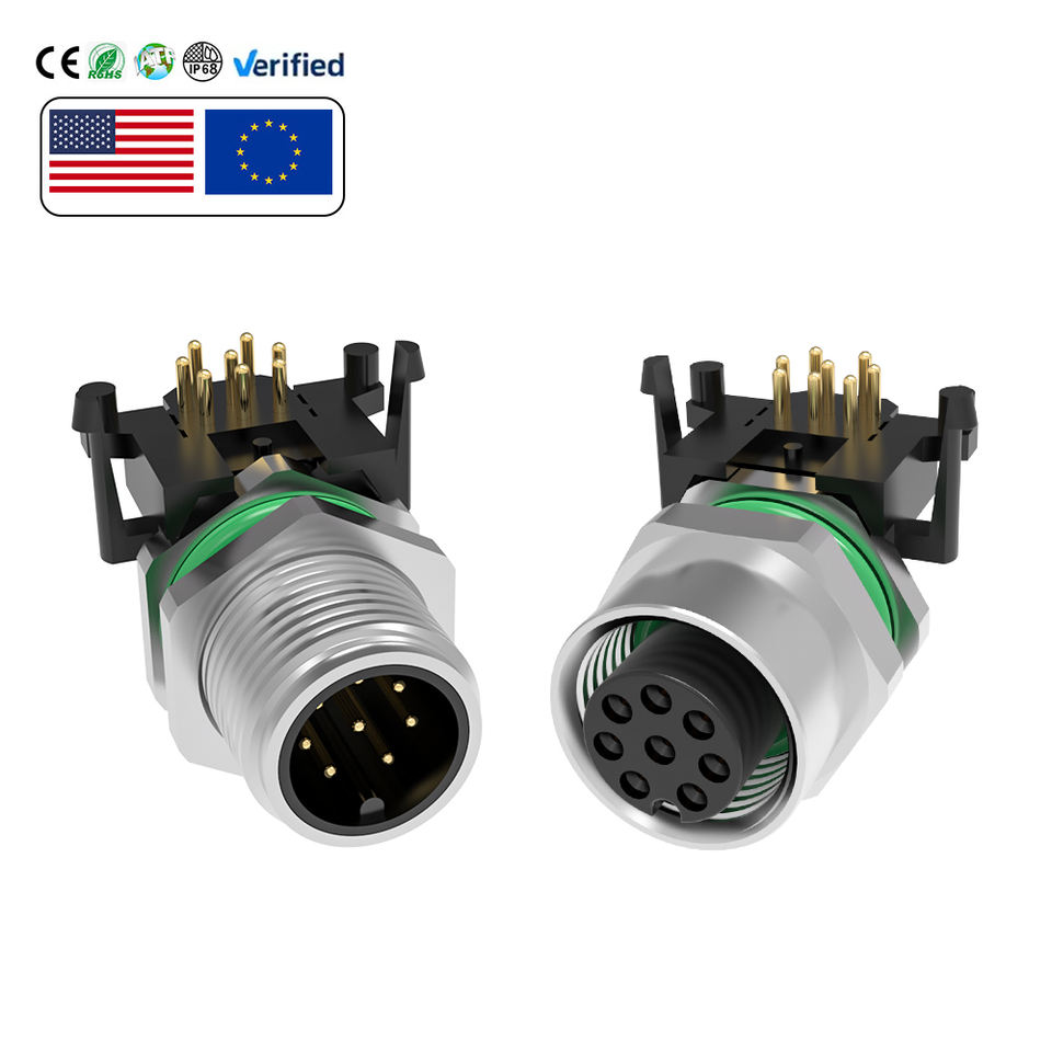 M12 8 Pin Panel Mount Connector M12 Angled Socket