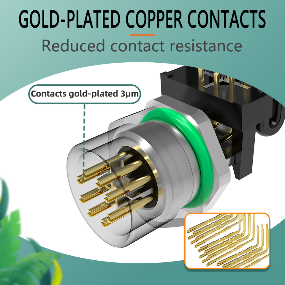 ขั้วต่อแผงวงจร8ขาตัวเมียสำหรับติดแผง M12 IP67 PCB ติดต่อกับผู้ผลิตช่องเสียบสัญญาณที่มุม M12