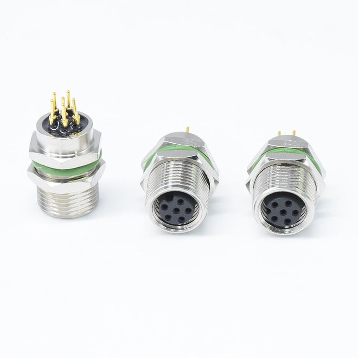 ขั้วต่อกันน้ำ IP67 แบบวงกลม M8 ติดตั้งด้านหน้า 5 ขา แบบตัวผู้ และแบบติดตั้งด้านหลัง 6 ขา แบบตัวเมีย ชนิด PCB สำหรับติดตั้งบนแผง