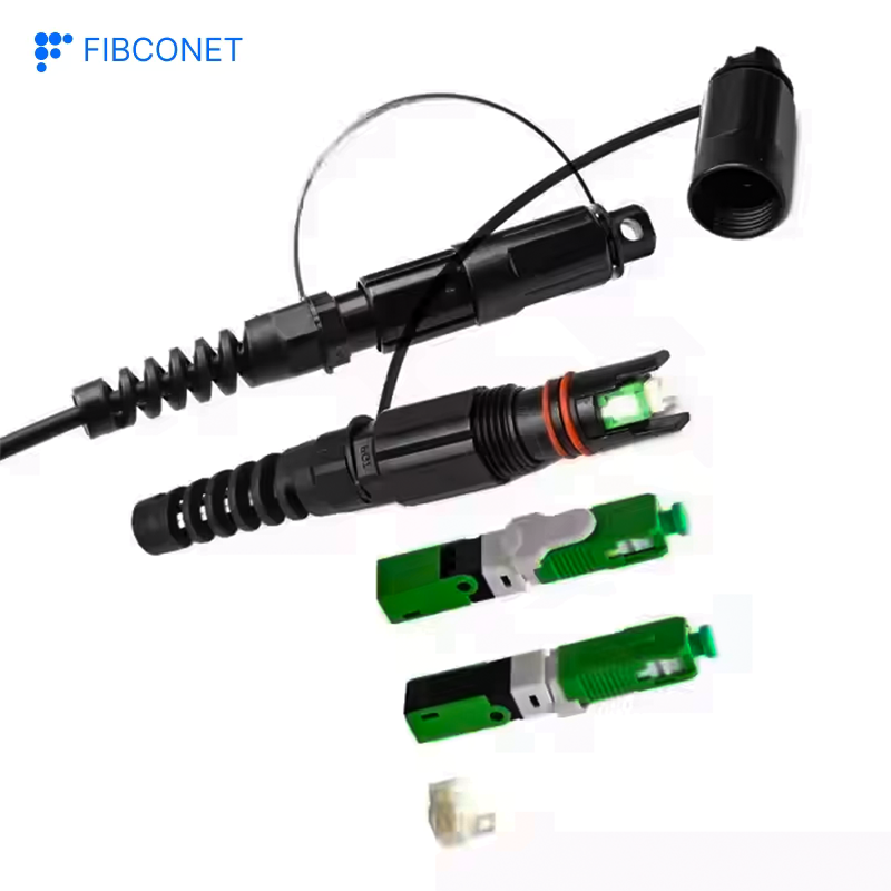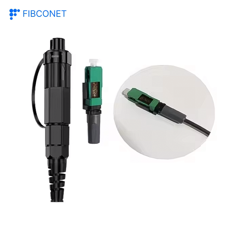 อุปกรณ์ไฟเบอร์ออปติก IP68 SC/APC สำหรับใช้งานกลางแจ้ง ตัวเชื่อมต่อแบบกันน้ำสำหรับประกอบภาคสนาม สีดำ