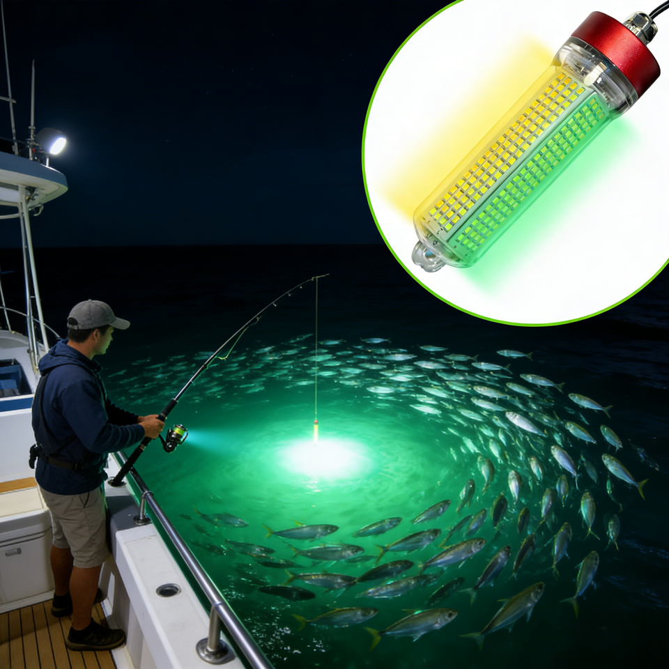 ไฟตกปลา LED กันน้ำ IP68 สองสี สำหรับล่อปลาใต้น้ำ ใช้ได้กับการตกปลาทะเลน้ำลึกและตกปลาน้ำแข็ง ชาร์จไฟได้