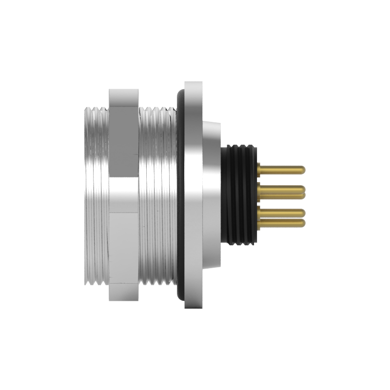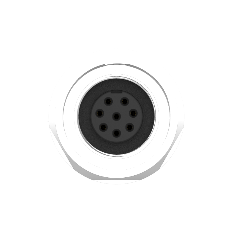 กันน้ำระดับ IP68 ขั้วต่อ M9 8 พิน ตัวเมีย แบบกลม ตัวเรือนทองแดง ล็อคด้านหน้า ชนิด PCB M12*0.5 รองรับกระแสไฟ 4A สำหรับเซ็นเซอร์ยานยนต์