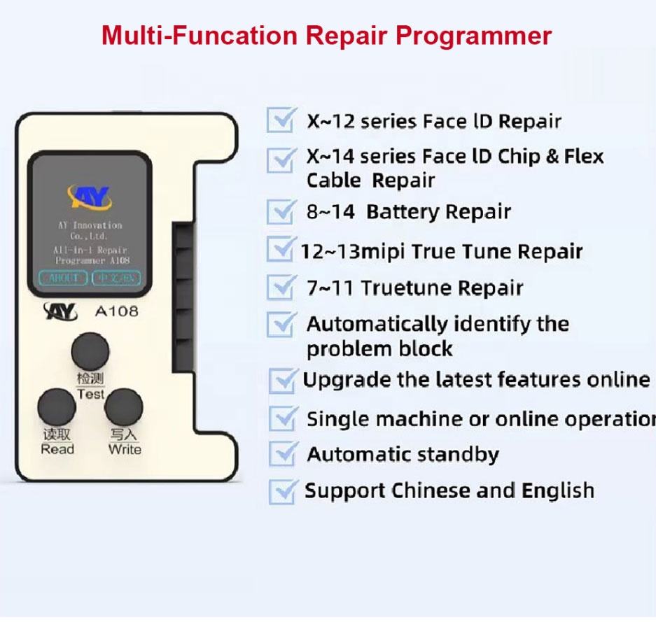 IPARTS AY A108 เครื่องโปรแกรมซ่อมแบตเตอรี่แบบ Multi-function Face ID Lattice Dot Matrix สำหรับ iPhone Efficiency Projector